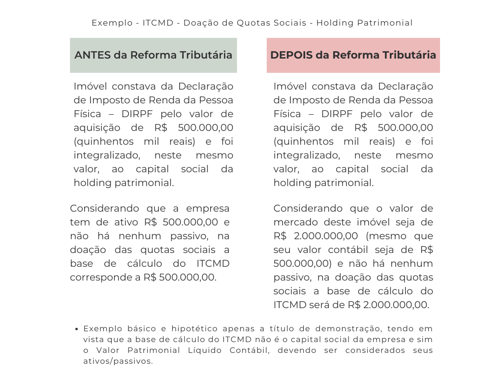 Ou seja, com a reforma haverá um aumento da carga tributária na doação de quotas.