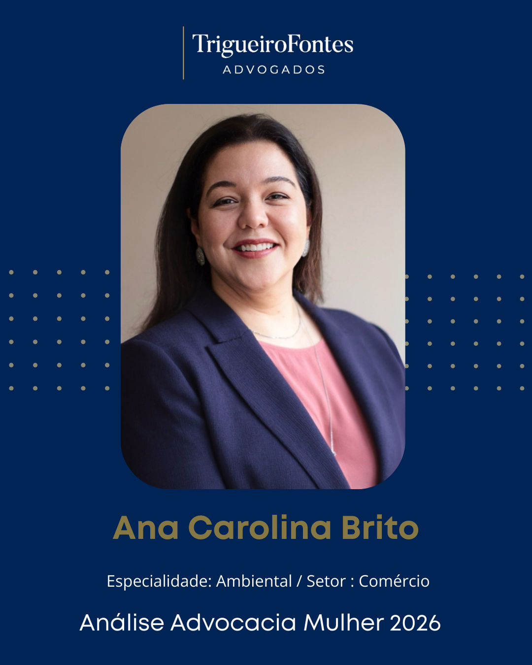 Parabéns à nossa sócia Ana Carolina Brito, destaque na Análise Advocacia Mulher 2026! Sua atuação em Direito Ambiental no setor de Comércio é referência para todos nós.